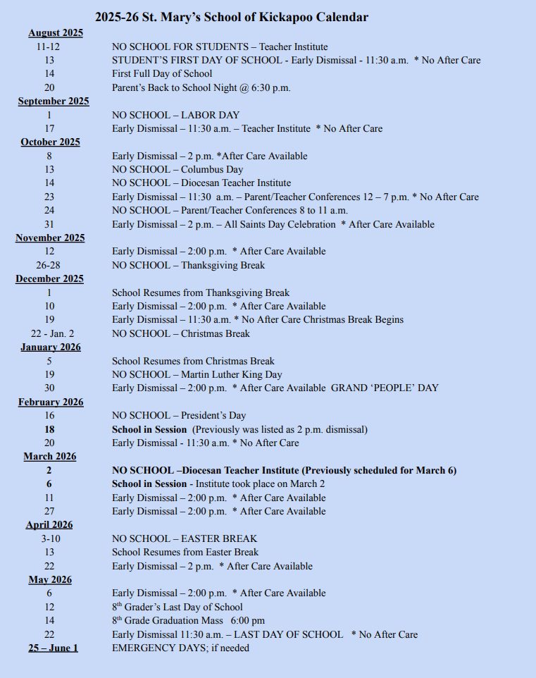 Early Dismissal @ 2 pm